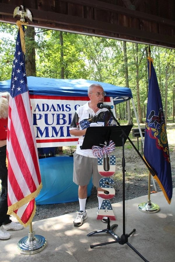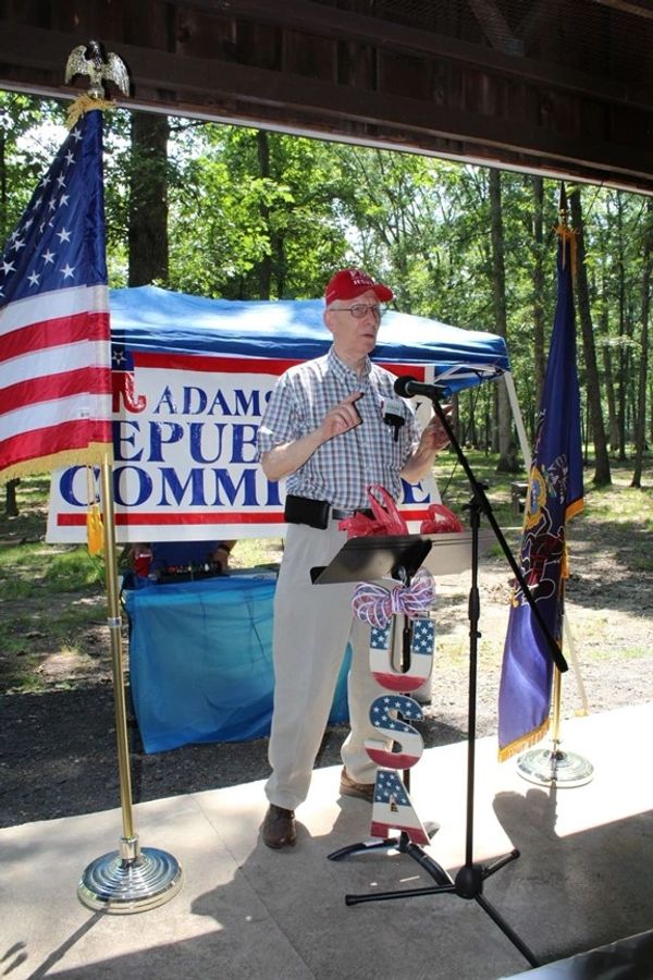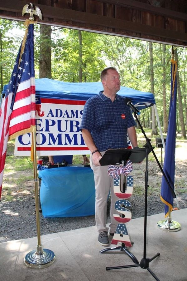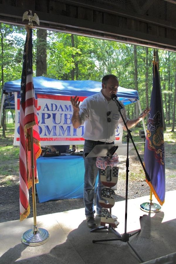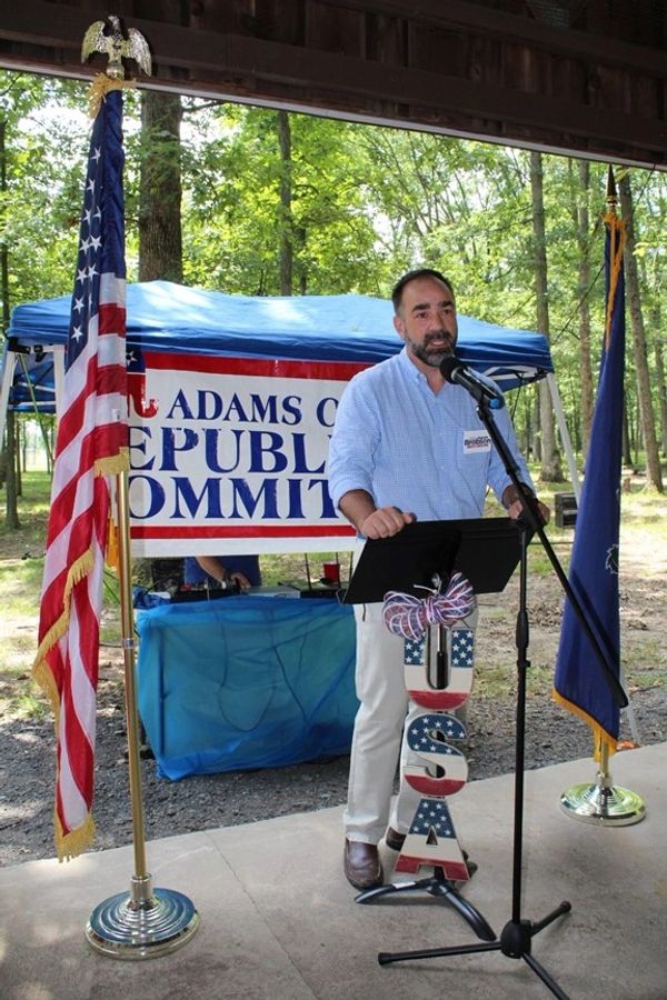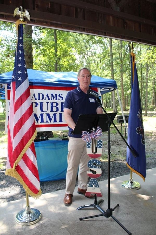 Congressman John Joyce, M.D., 13th District speaking to more than 100 Patriots from Adams County.