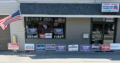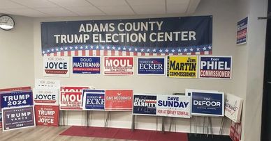 The 𝐀𝐝𝐚𝐦𝐬 𝐂𝐨𝐮𝐧𝐭𝐲 𝐆𝐎𝐏 𝐕𝐢𝐜𝐭𝐨𝐫𝐲 𝐂𝐞𝐧𝐭𝐞𝐫 stocked with signs! Let's work together to help Trump/Vance and the rest of the Republican Candidates achieve 𝐕𝐢𝐜𝐭𝐨𝐫𝐲 on November 5th.