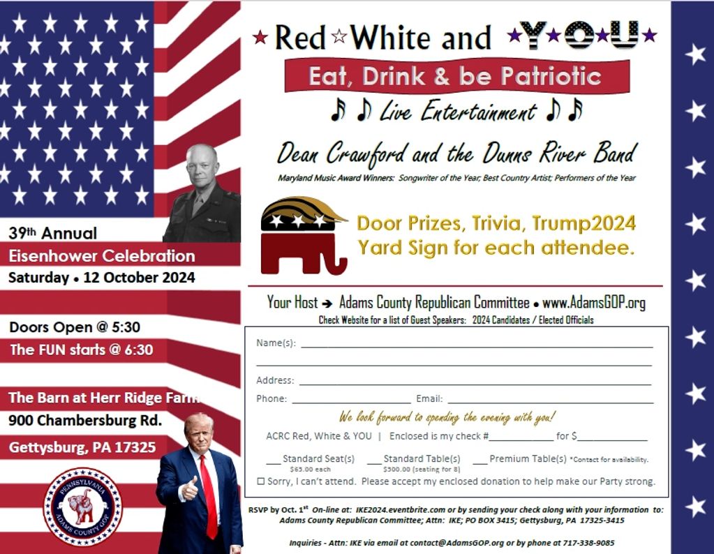 Join us on Saturday, October 12th @ 6:30 for our Annual Eisenhower Celebration at the Barn at Herr Ridge Farm in Historic Gettysburg.