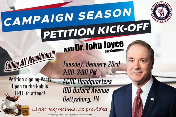 Surprise visit from Dr. John Joyce for Congress at the 𝐀𝐝𝐚𝐦𝐬 𝐂𝐨𝐮𝐧𝐭𝐲 𝐆𝐎𝐏 𝐕𝐢𝐜𝐭𝐨𝐫𝐲 𝐂𝐞𝐧𝐭𝐞𝐫.